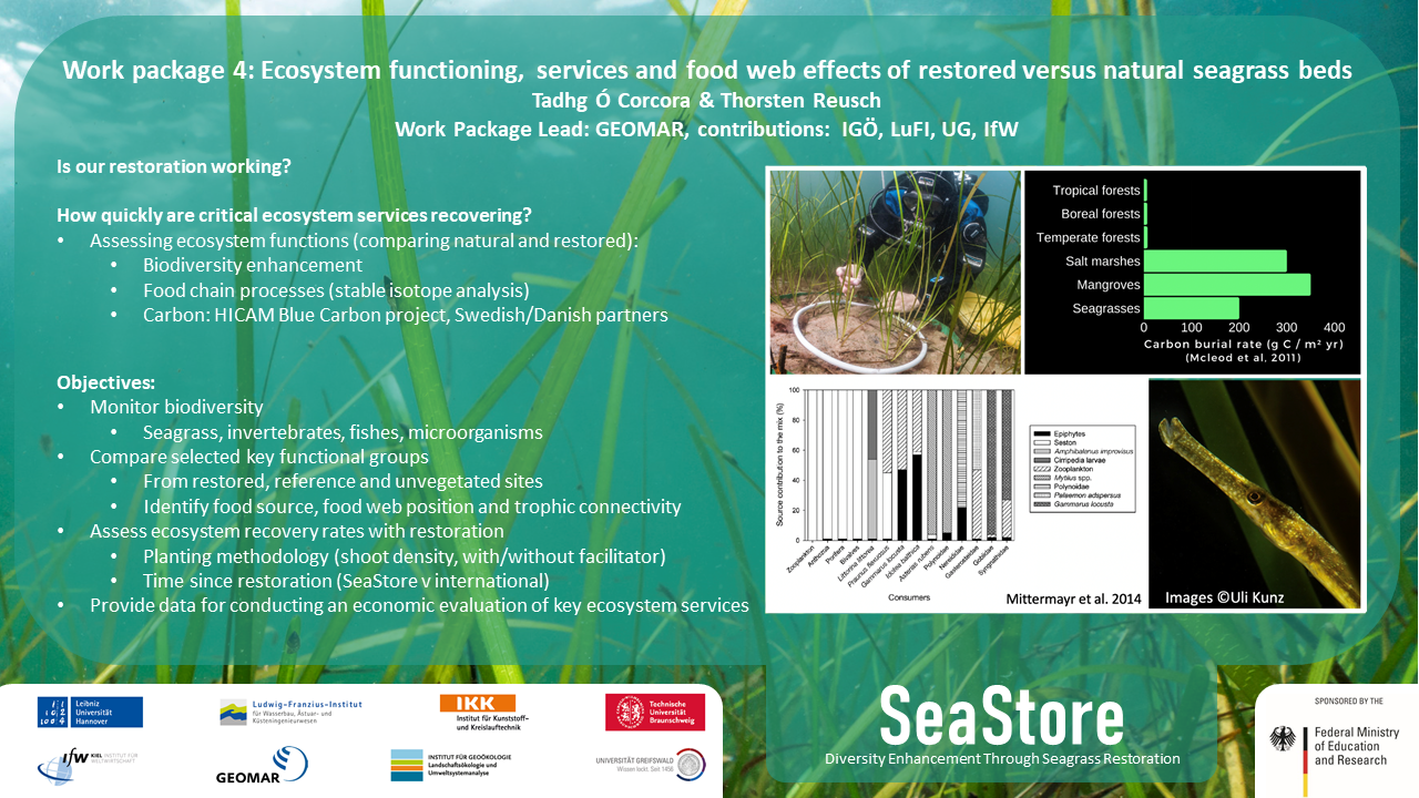 Tadhg Ó Corcora, Thorsten Reusch: Ecosystem functioning, services and food web effects of restored versus natural seagrass beds (SeaStore)